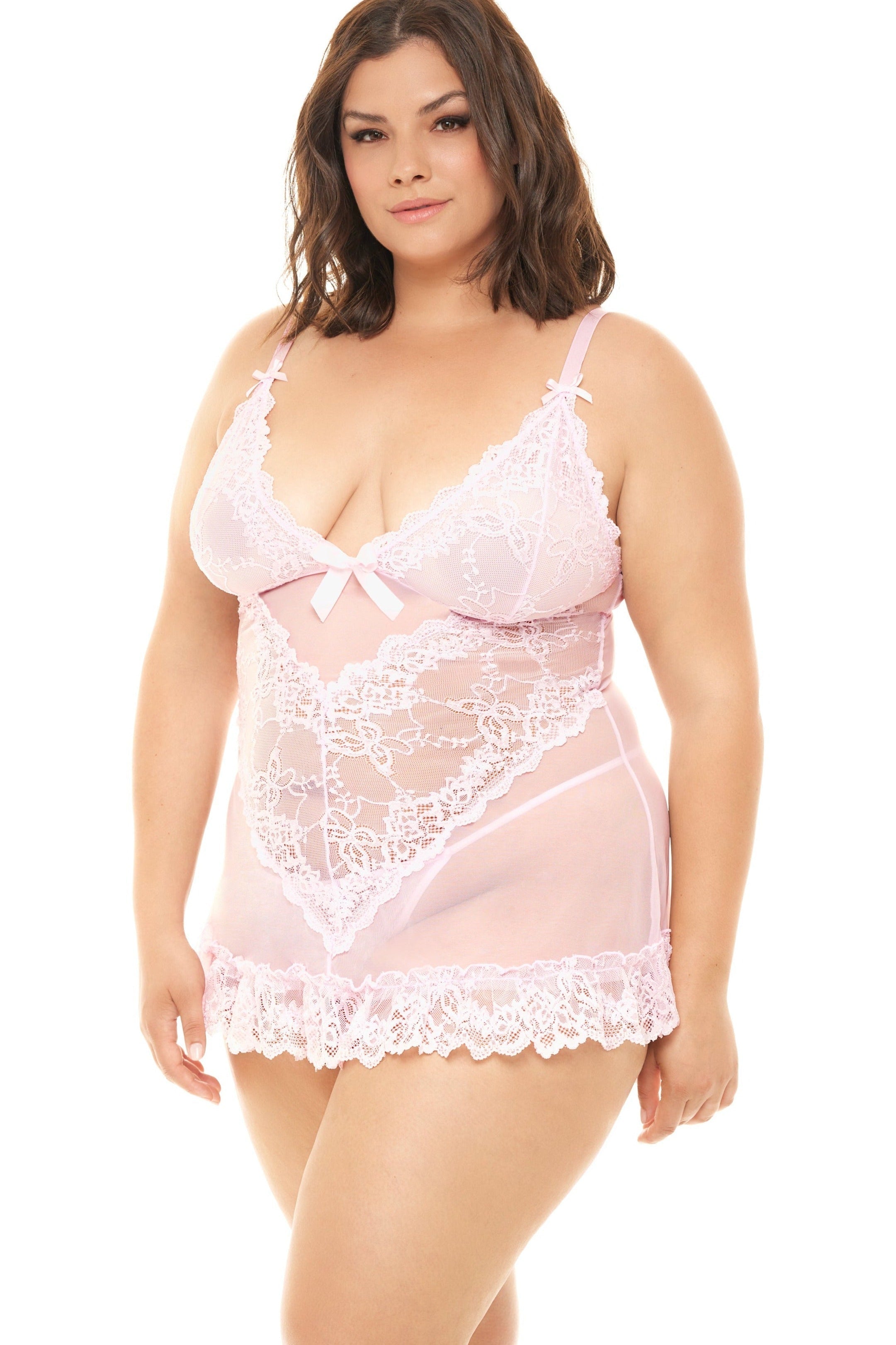 Babydoll-Set mit Spitze und Schleifen in Übergröße