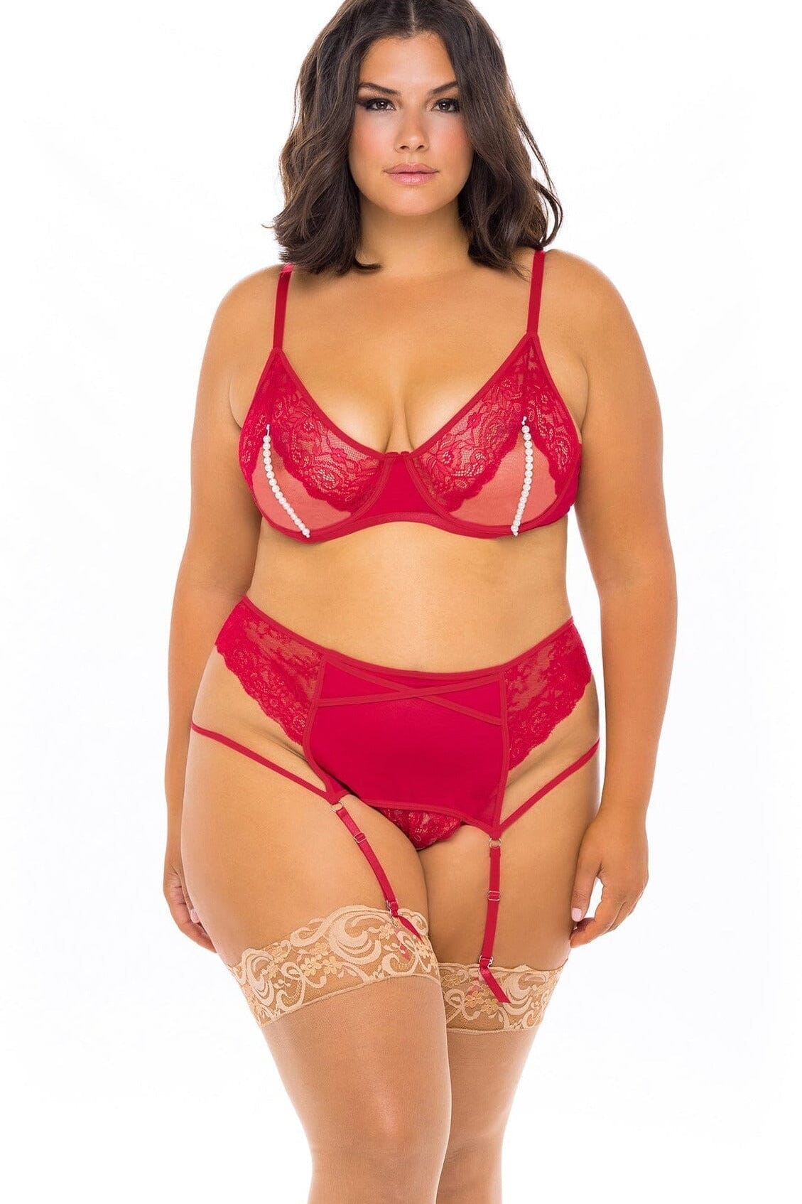 Set aus BH und passendem Tanga mit Spitze und Perlen