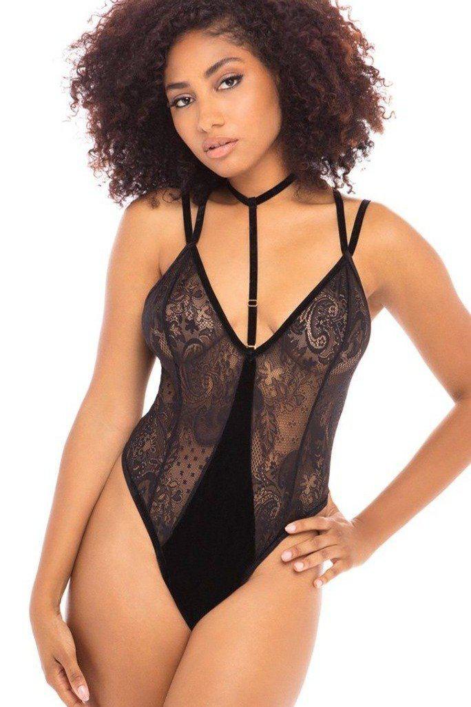 SOFT-CUP-TEDDY MIT ABNEHMBAREM HARNESS. SPITZEN- UND SAMTEINSÄTZEN UND RÜCKENRIEMEN-DETAILS