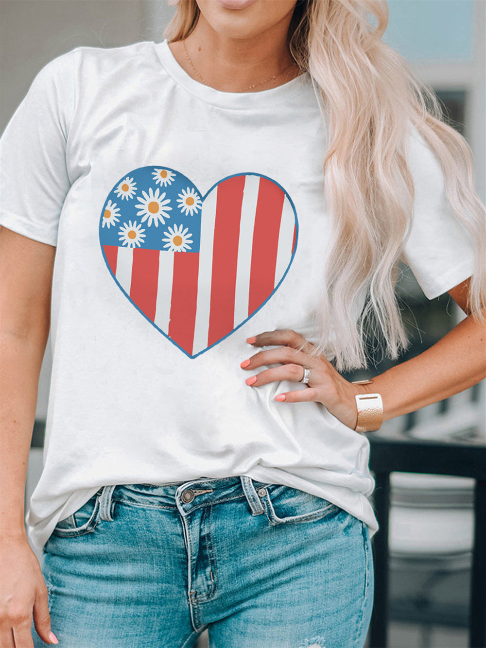 SKU: American Flag Chrysanthemum Heart Print T-shirt
