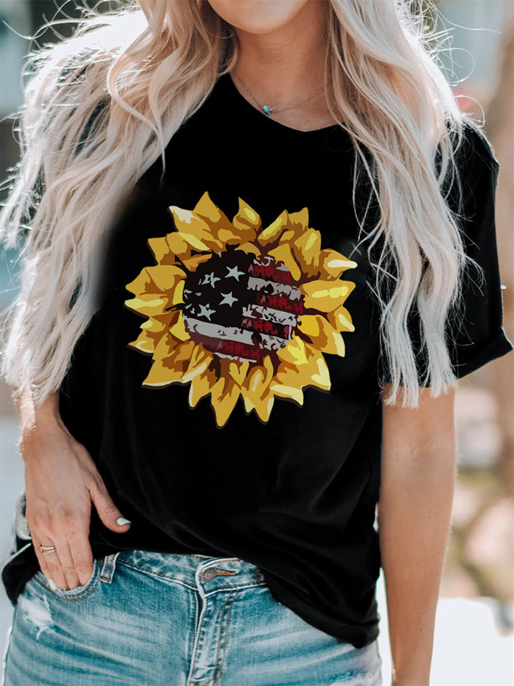 Sonnenblume-T-Shirt mit amerikanischer Flagge