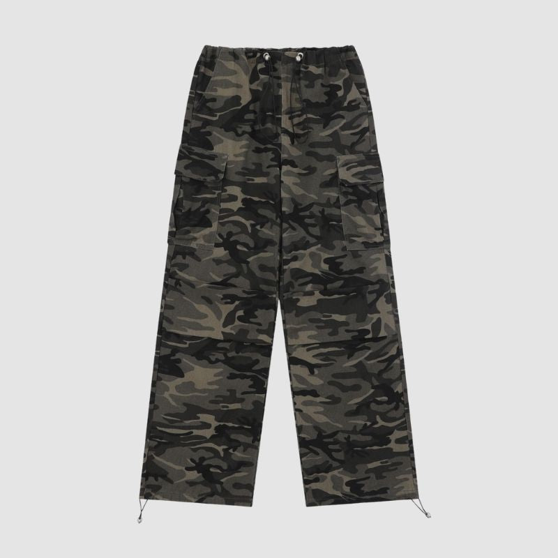 Eigenschaften: Hose. Cargohose. Tarnmuster. Mehrere Taschen. Plissiertes Design. Weites Bein. Kordelzug in der Taille. Reißverschluss vorne. Nicht elastisch. Gerades Bein . Lockere Passform . Unisex. Paar-Outfits.
