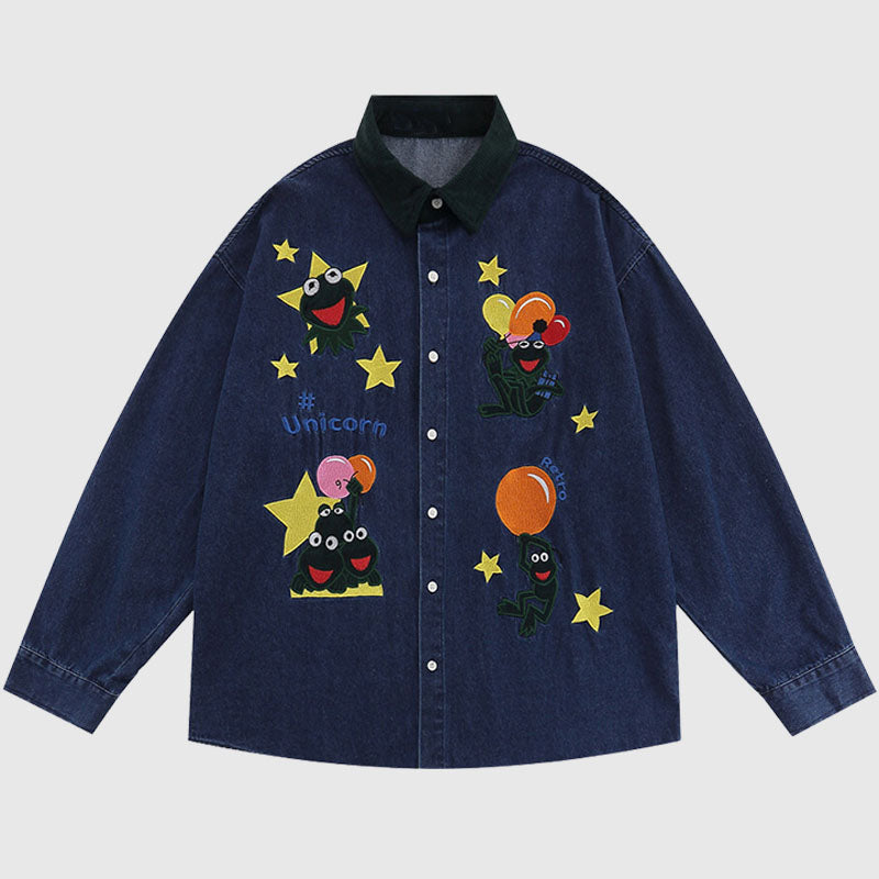Eigenschaften: Hemden. Revers. Langarm. Aufgedrucktes Design mit Cartoon-Tiermuster. Lockere Passform. Weich und atmungsaktiv. Unisex. Paar-Outfits.