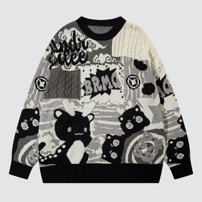 Jacquardpullover mit Cartoon-Drachen-Patchwork
