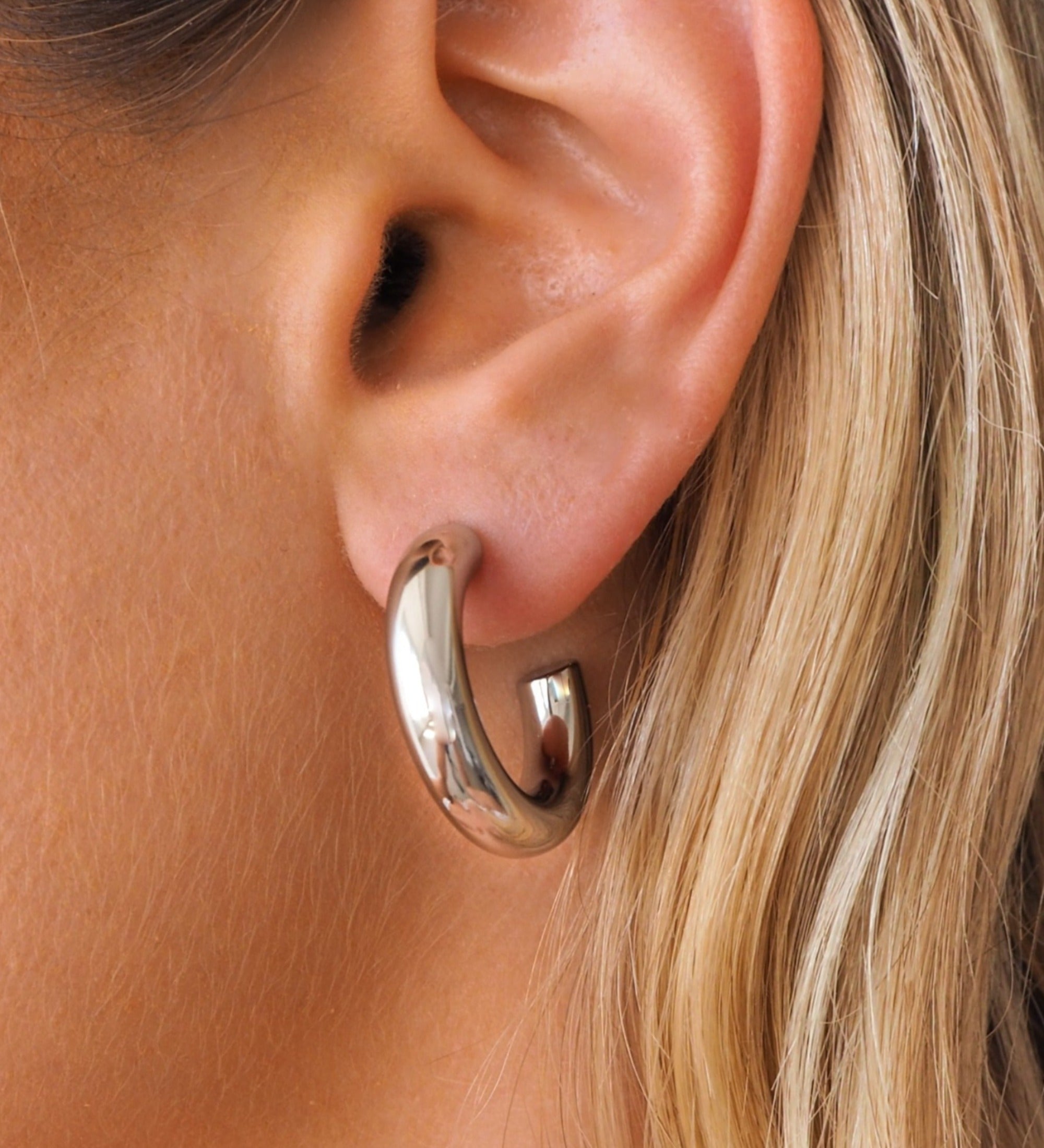 Leichte, klobige, rhodinierte Creolen aus Silber mit hypoallergenem Stecker