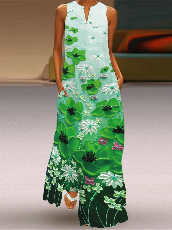 Ärmelloses Maxikleid mit V-Ausschnitt und Print