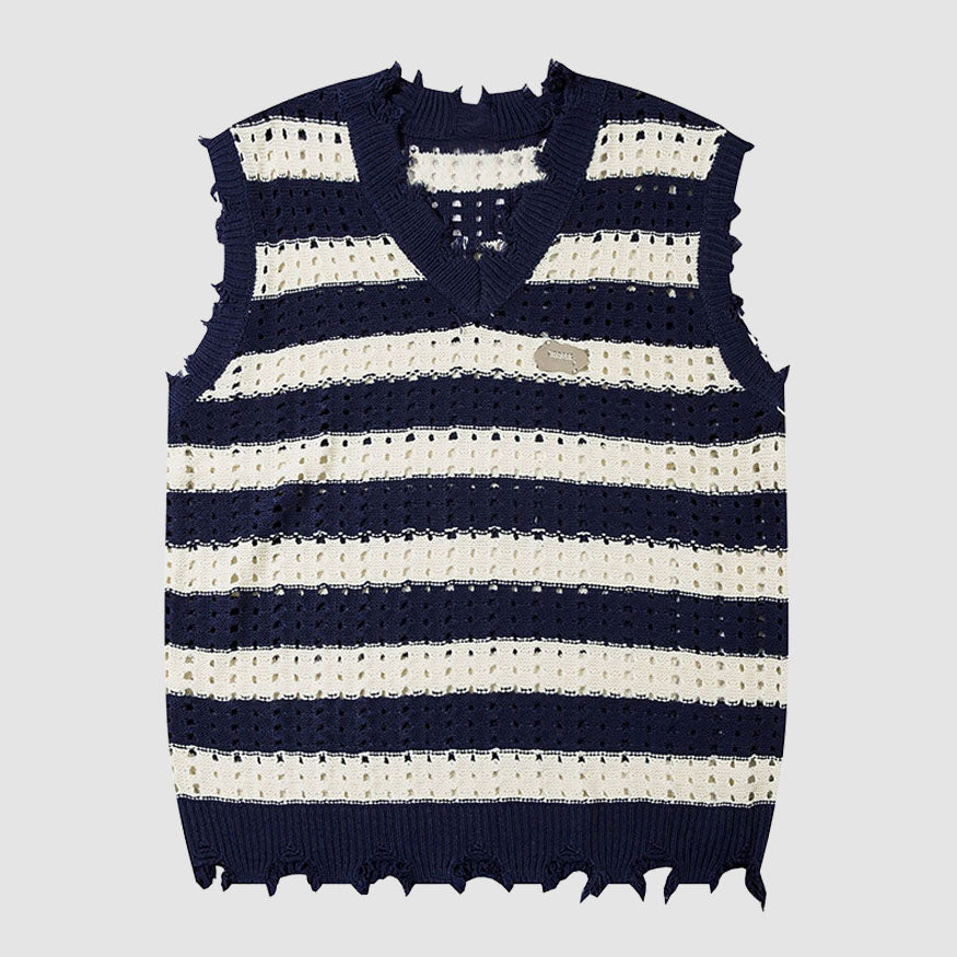 Eigenschaften: Weste. V-Ausschnitt. Ärmellos. Pullover. Ausgehöhltes Design. Lockere Passform. Jacquardgewebe. Paar-Outfits