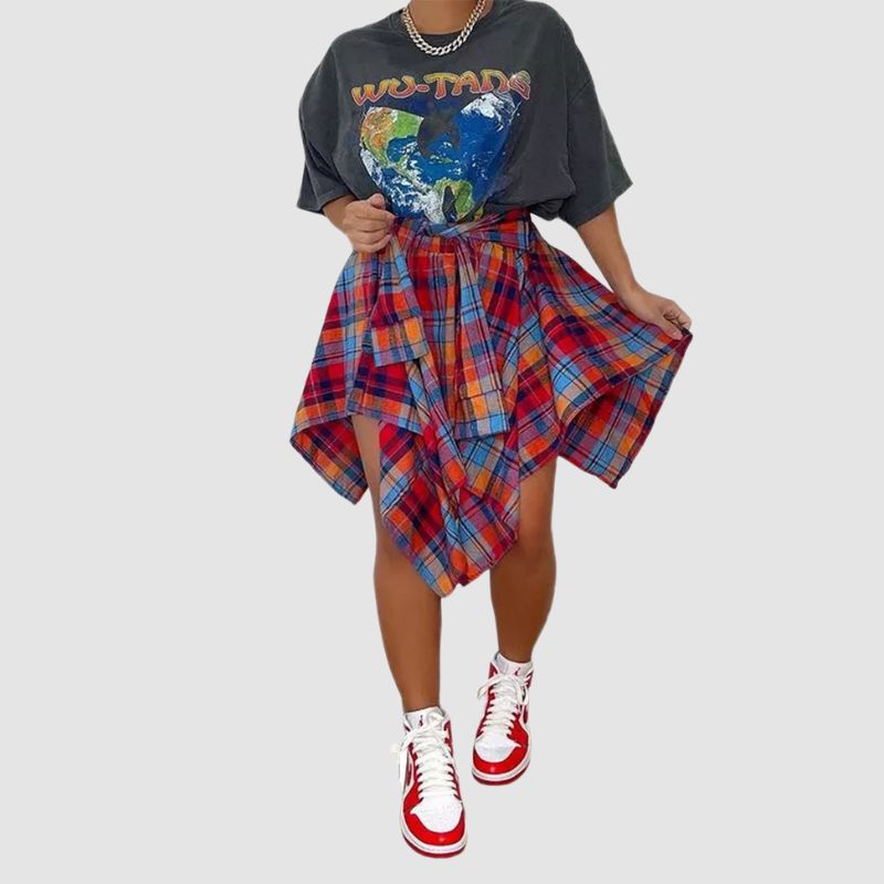 Merkmale: Röcke. Kariert. Unregelmäßiges Design. Kordelzug in der Taille. Zum Binden. Locker.