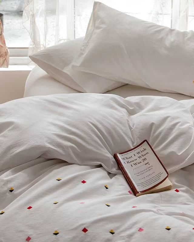Create a serene. stylish space with Magchic's Isla White Floral Embroidered Bedding Set. This coquette-inspired ensemble features dainty floral embroidery and soft ruffled accents for a subtle. feminine look. Made from 100% breathable cotton. it offers lasting comfort and charm. The duvet cover includes corner ties and zippers to keep your insert secure. Perfect for clean. vintage. or cottagecore-inspired interiors. this set blends softness. quality. and romantic detail.