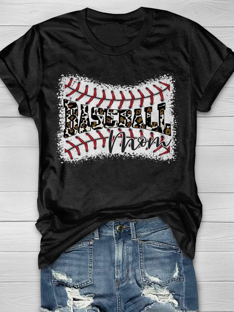 SKU: Leopard Baseball Mom Print Short Sleeve T-shirt