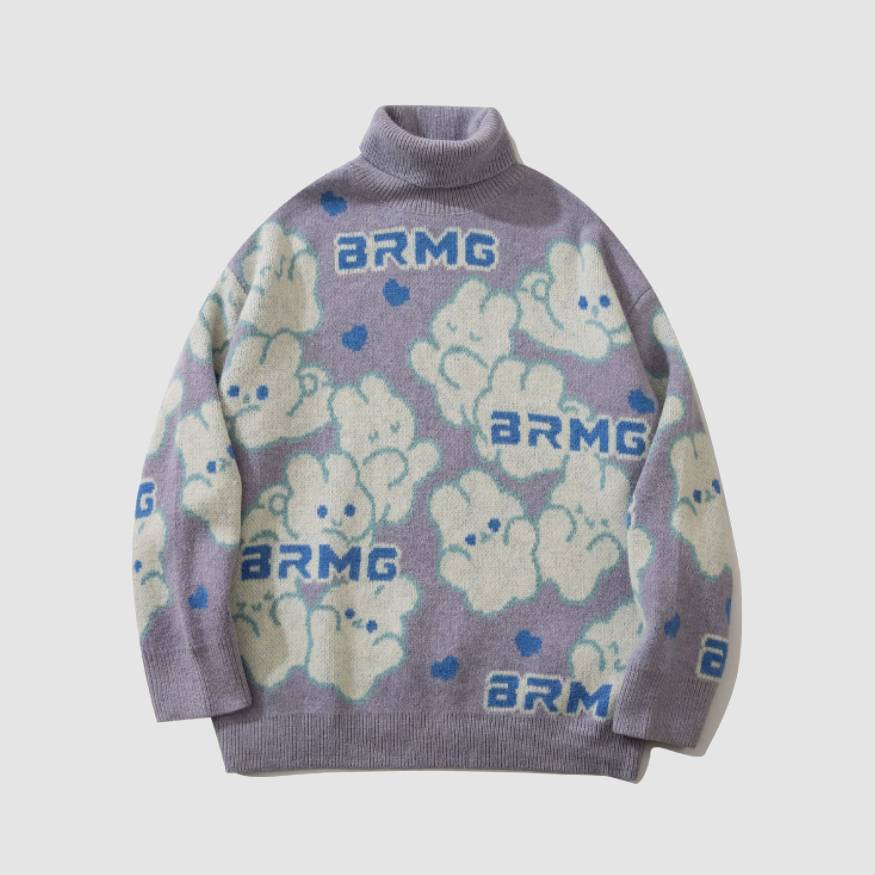 Rollkragenpullover mit Buchstaben- und Kaninchenmuster