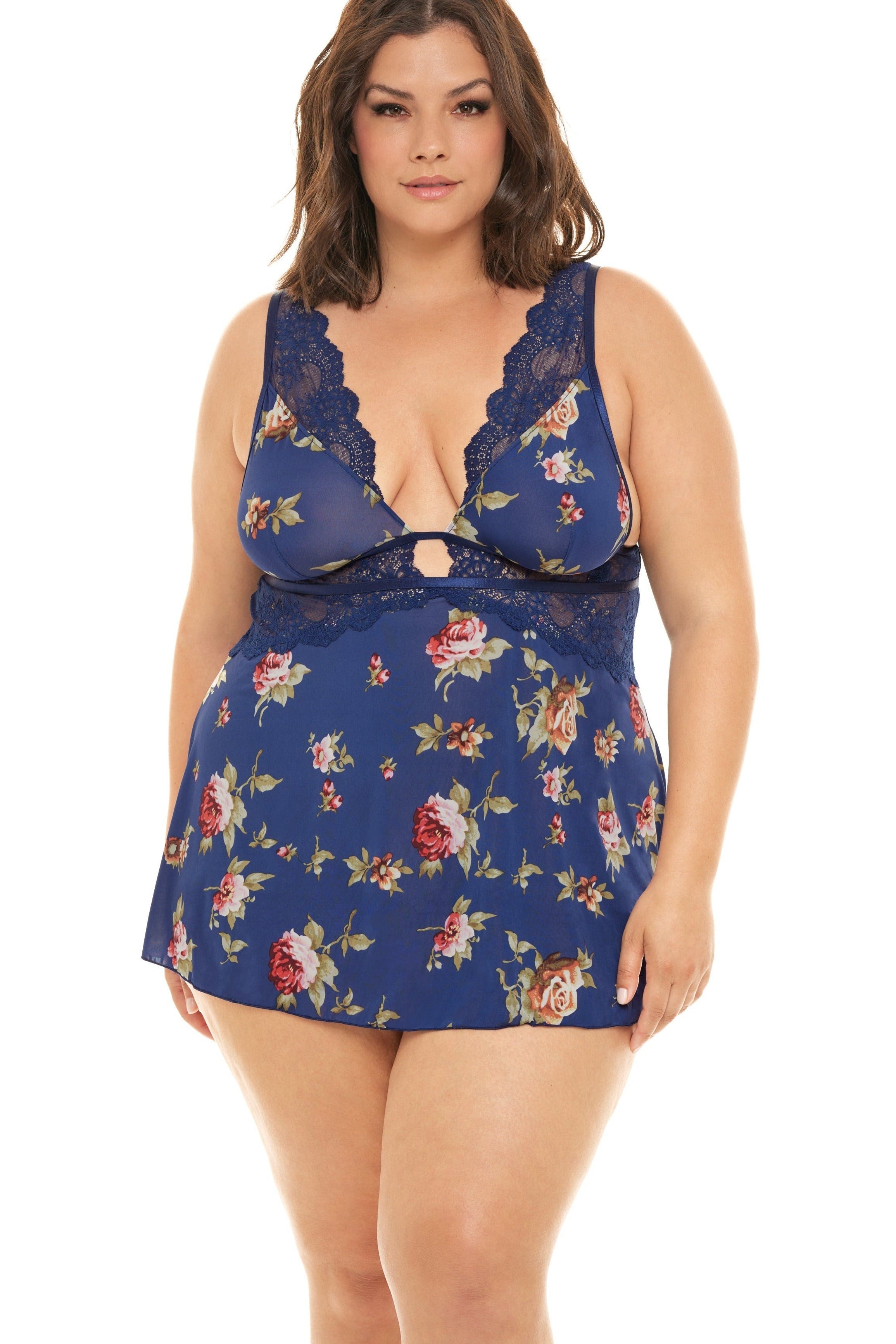 Bedrucktes Briefbeschwerer-Babydoll mit breiten Muschelspitzendetails
