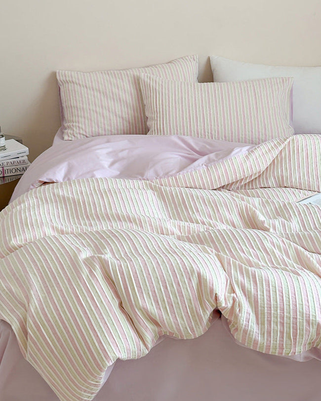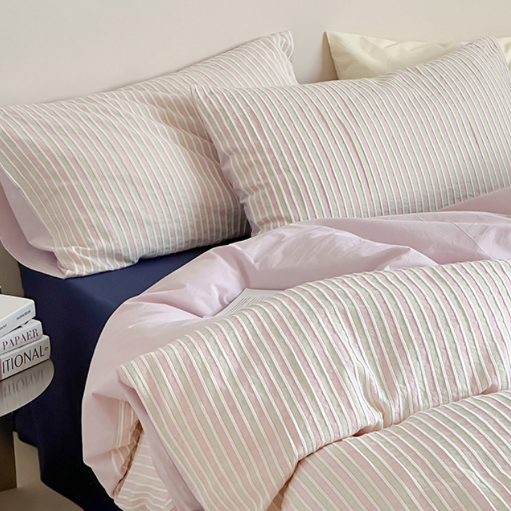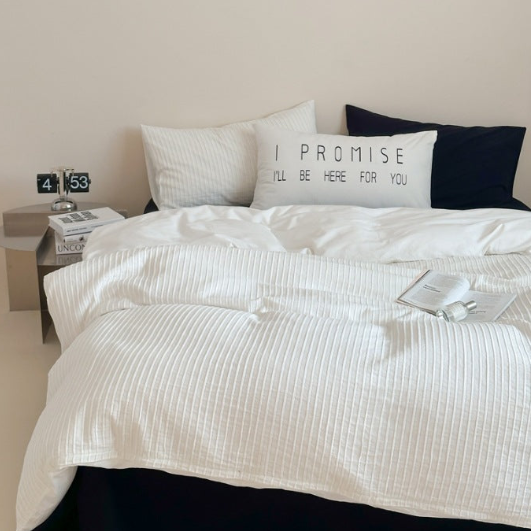 Elevate your bedroom with Magchic's Logan Modern Pleated Striped Bedding Set. crafted from 100% cotton for a soft. breathable feel. Featuring sleek pleated stripes. it brings a touch of coquette charm while staying effortlessly modern. Each duvet cover includes corner ties and a hidden zipper closure. keeping your duvet insert secure promising enduring quality tailored just for you. Perfect for curating a minimalist or modern chic aesthetic. this set blends comfort. style. and practicality in one cozy bundle.