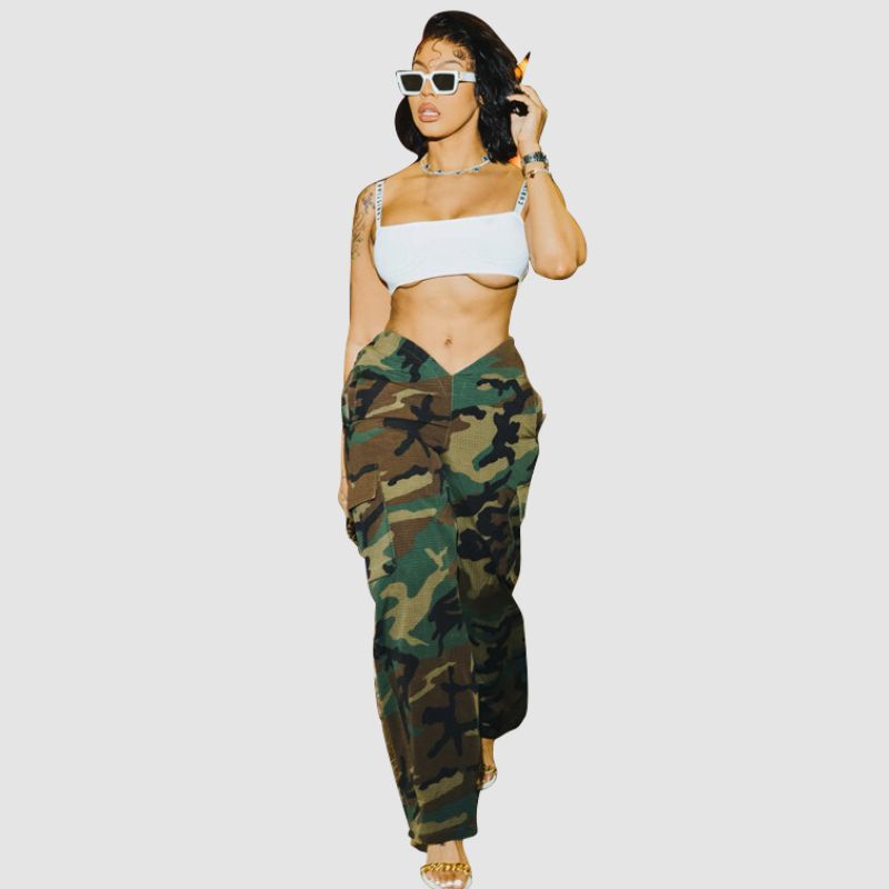 Eigenschaften: Hose. Cargohose. Niedrige Taille. Camouflage-Druckdesign. Weite Beine. Nicht elastisch. Reißverschluss vorne. Gerades Bein . Lockere Passform . Unisex. Paar-Outfits.