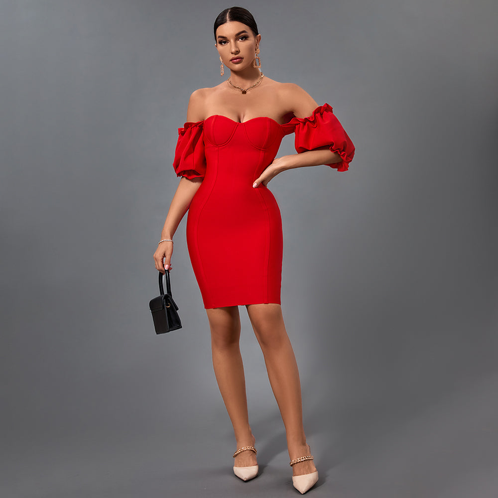 Schulterfreies rückenfreies Mini-Bandage-Kleid
