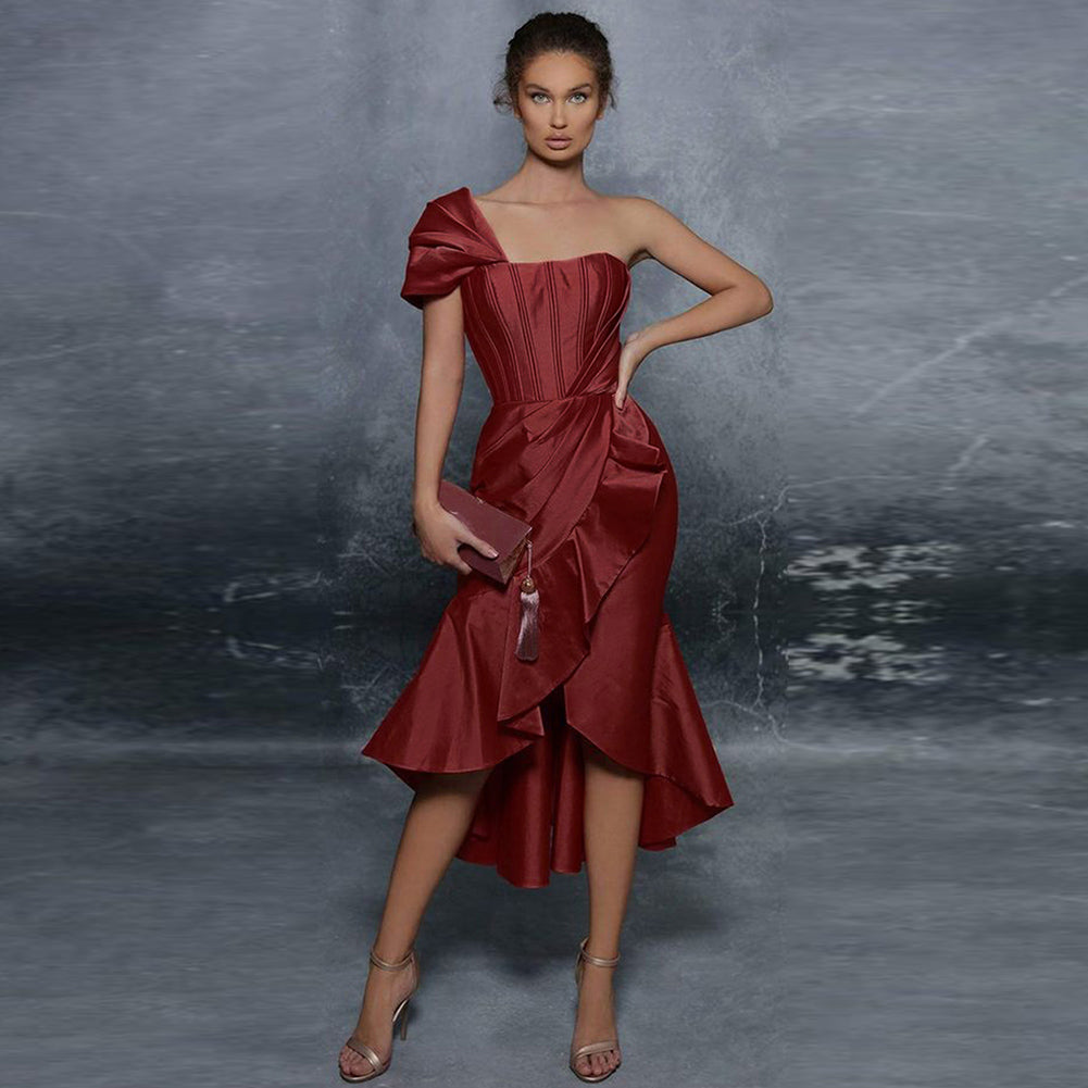 Ärmelloses Midi-Bodycon-Kleid mit Rüschen und einer Schulter HB76660