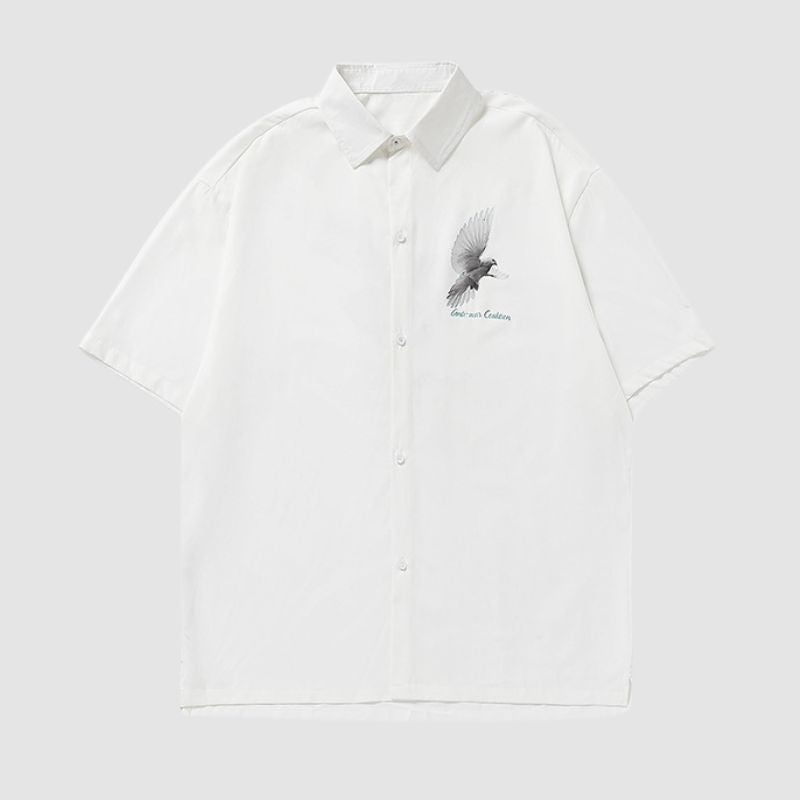 Eigenschaften: Hemden. Revers. Kurze Ärmel. Einfarbig. Aufdruck mit Friedenstaube. Fallend. Glatt. Lockere Passform. Weich und atmungsaktiv. Unisex. Paar-Outfits.
