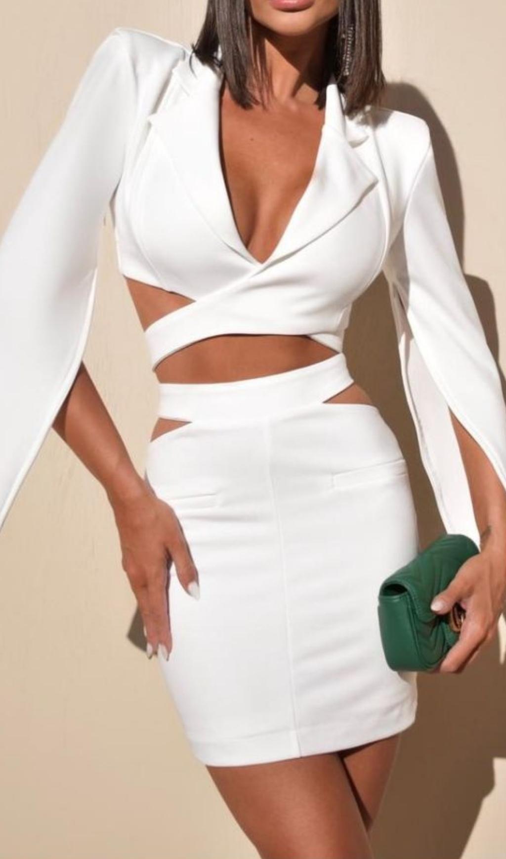 Das einzigartige Design des Taillenkreuzverbands verleiht Ihrer Taille eine schlanke und sexy Silhouette. Das geteilte Manschettendesign unterstreicht Ihren dominanten Königinnenstil. Der Anzugkragen des Oberteils unterstreicht Ihre Fähigkeiten. Dieses Cocktailkleid vereint Weiblichkeit und Großzügigkeit und ist perfekt für jede Party! Verdeckter Reißverschluss/Verschluss hinten