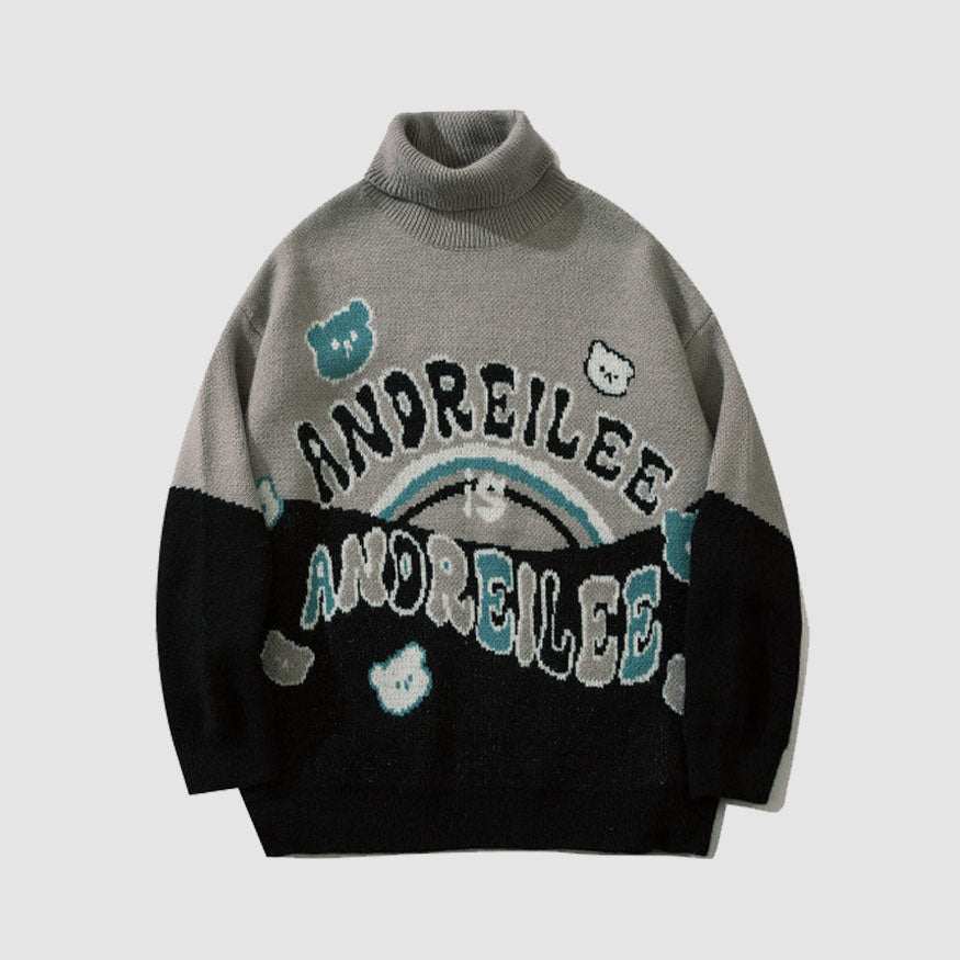 Rollkragenpullover mit Regenbogen- und Bärenmuster