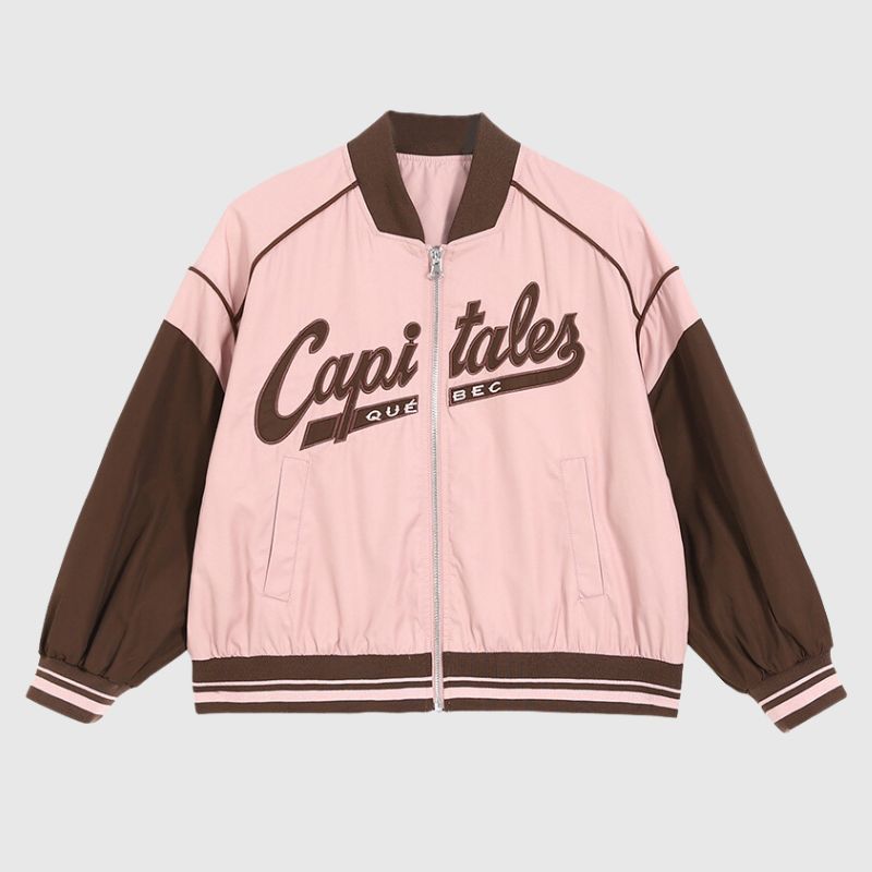 Kurze Baseballjacke im Retro-Farbblockdesign in Pink