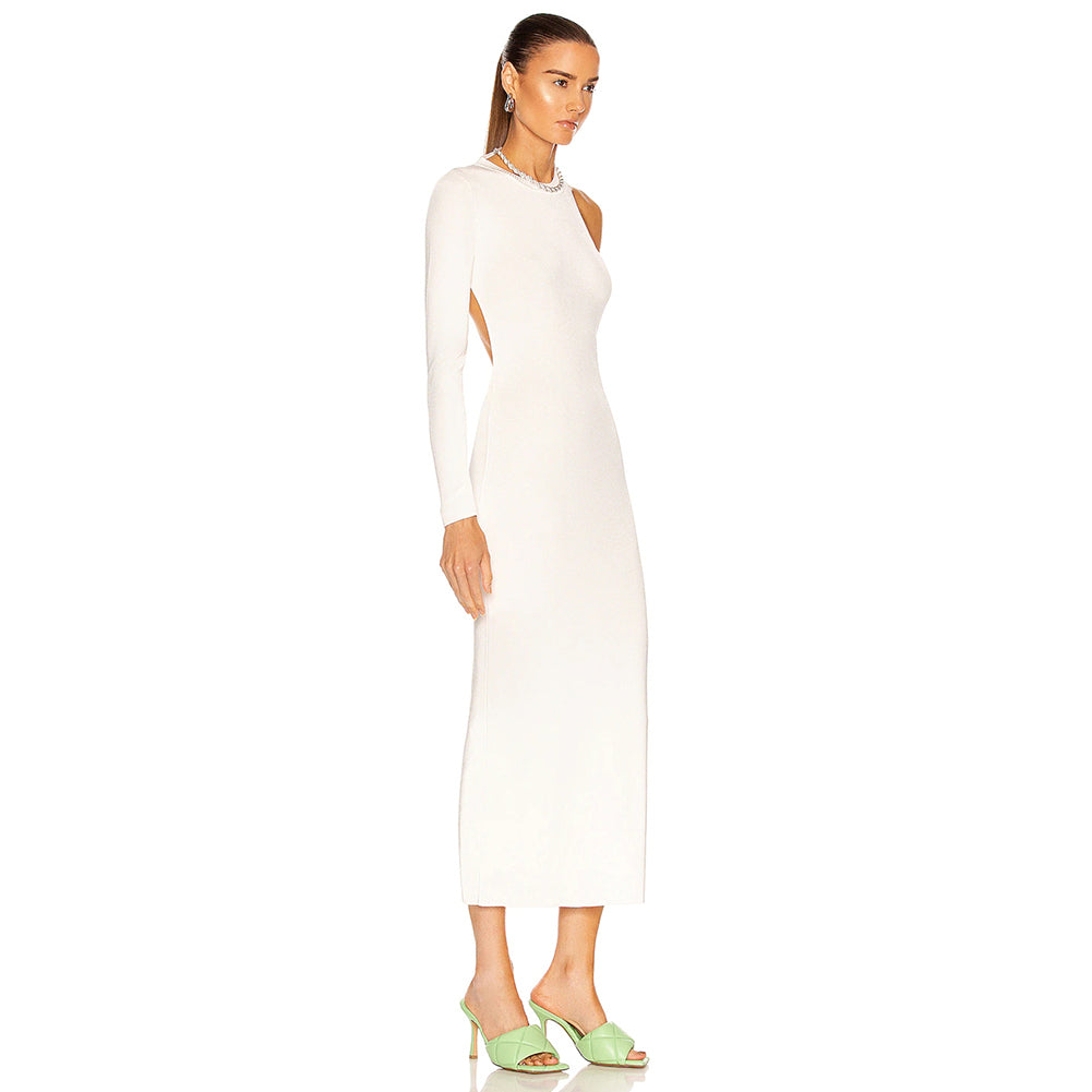 Asymmetrisches Midi-Bandagekleid mit Rundhalsausschnitt und langen Ärmeln HB7922