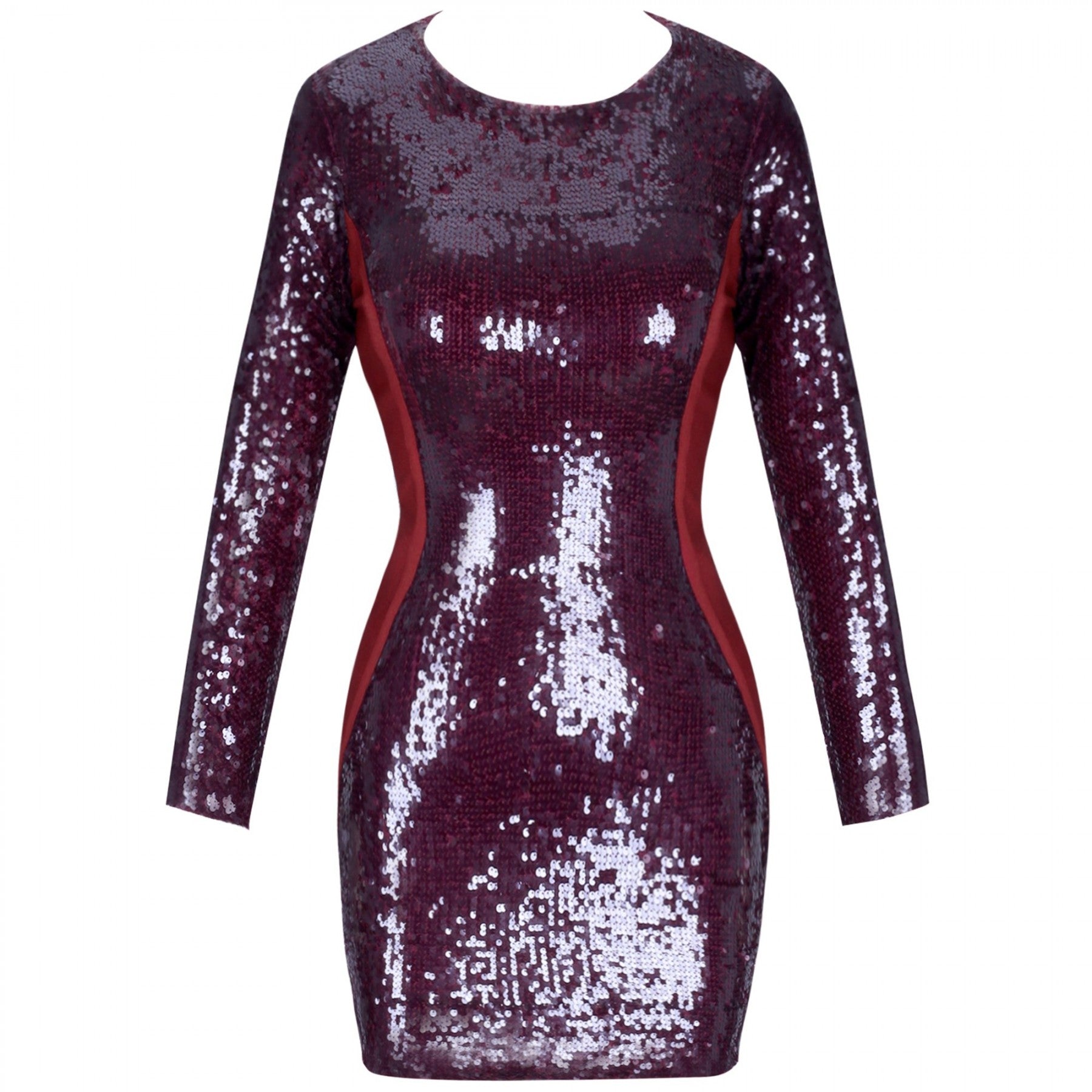 Rundhalsausschnitt Langarm Mesh Mini Bodycon Kleid HI998