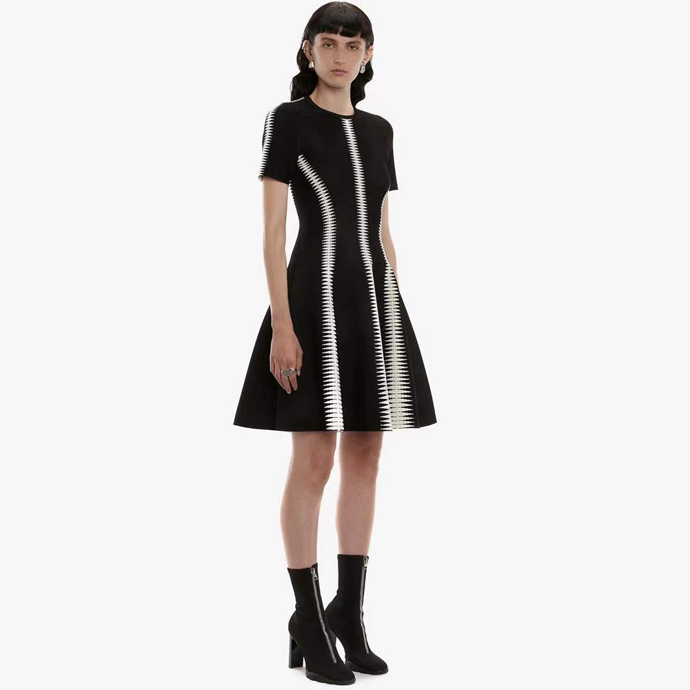 Mini-Bodycon-Kleid mit Rundhalsausschnitt, kurzen Ärmeln, gestreift, HT2685