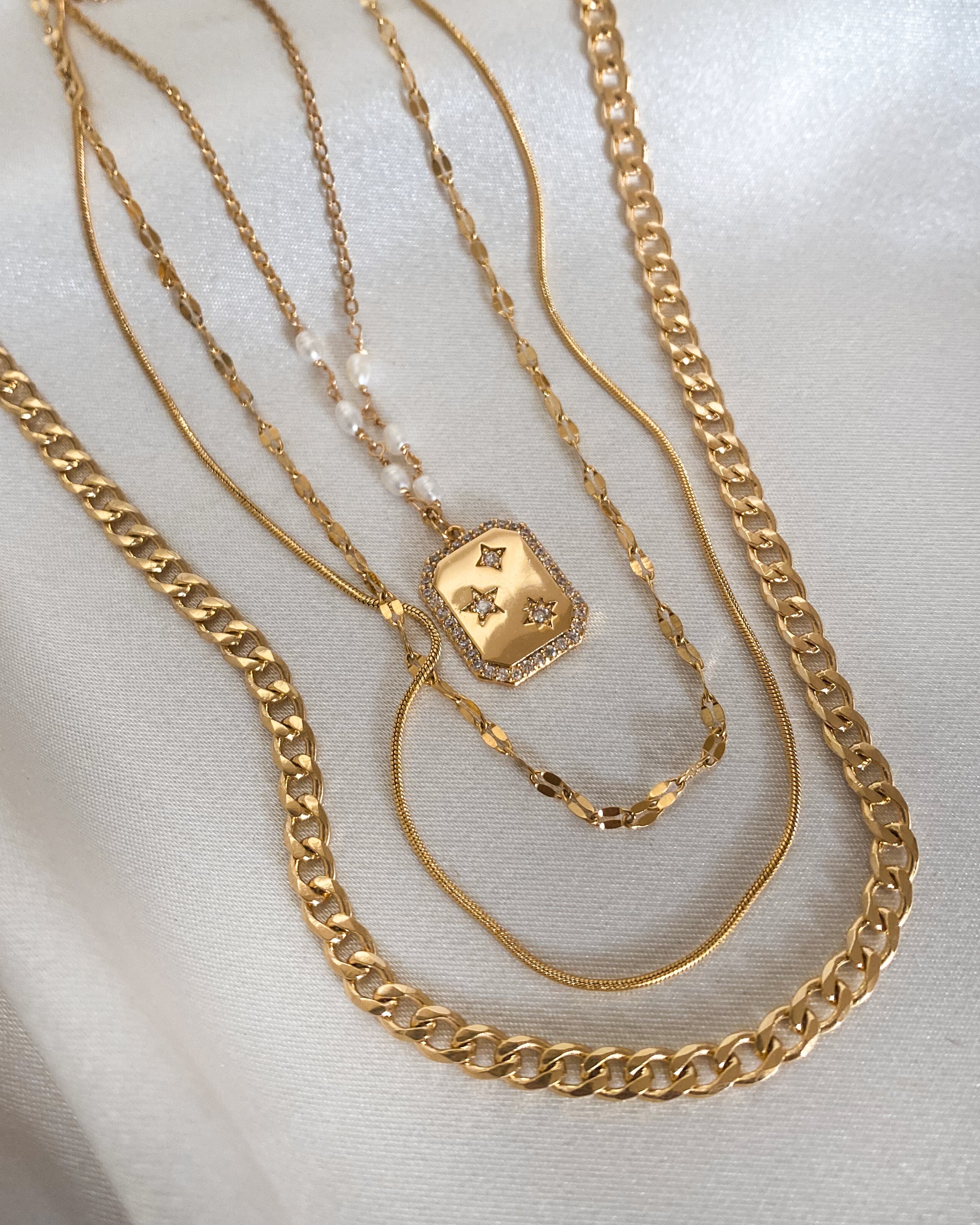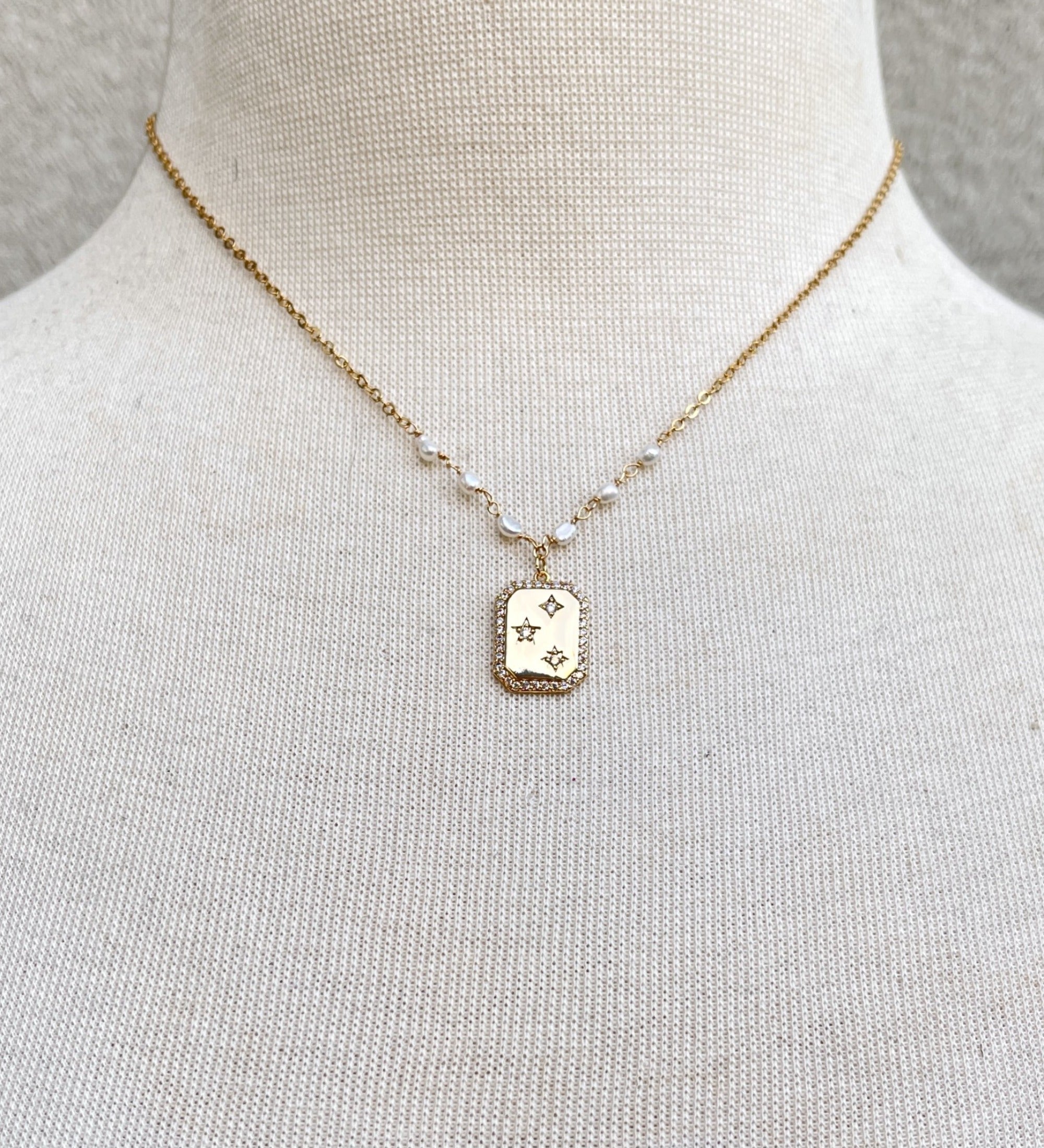 Kristallsternanhänger mit weißen Süßwasserperlen an einer vergoldeten Halskette