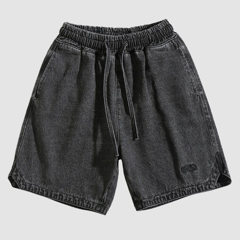 Eigenschaften: Jorts. Schlitzdesign. Gewaschen. Kordelzug in der Taille. Muster gestickt. Vintage. Seitentasche. Gerades Bein . Lockere Passform . Unisex. Paar-Outfits.