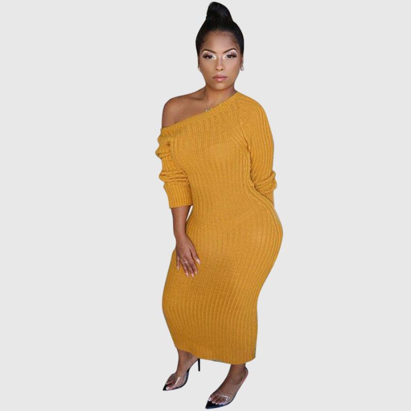 Merkmale: Kleid. Rundhalsausschnitt. schulterfrei. rückenfrei. hohe Taille. lange Ärmel. Strick. einfarbig. schmal. figurbetont.