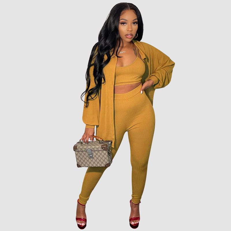 Eigenschaften: Set. Hose. bauchfreies Top. Hemd. Leibchen. Langarm. Lange Hose. Kordelzug in der Taille. Hohe Taille. Einfarbig. Figurbetont. Dreiteilig.