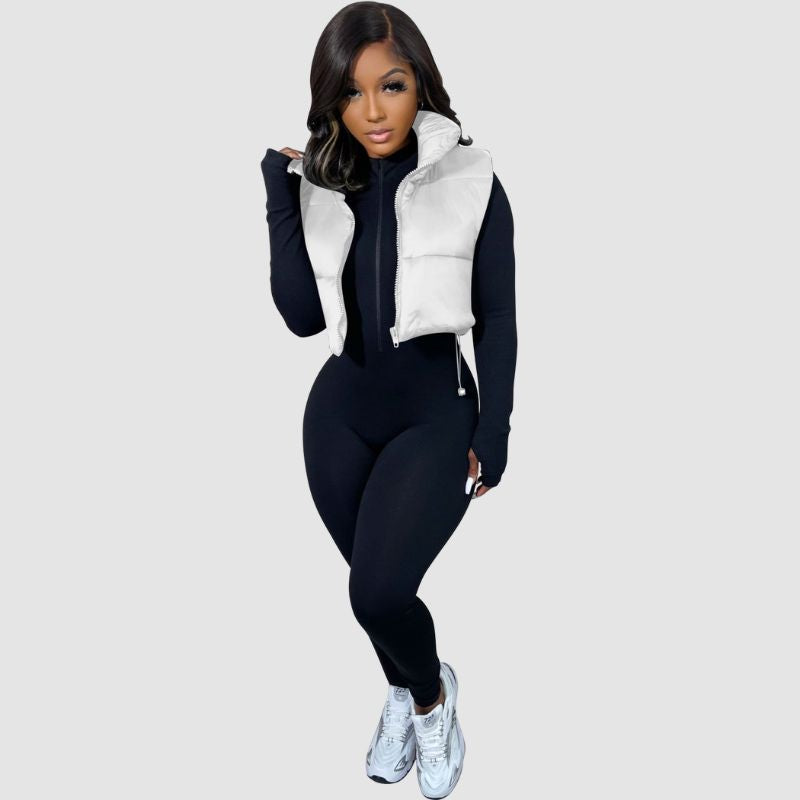 Eigenschaften: Mantel. Revers. ärmellos. einfarbig. Reißverschluss. lockere Passform . weich und atmungsaktiv. Paar-Outfits.
