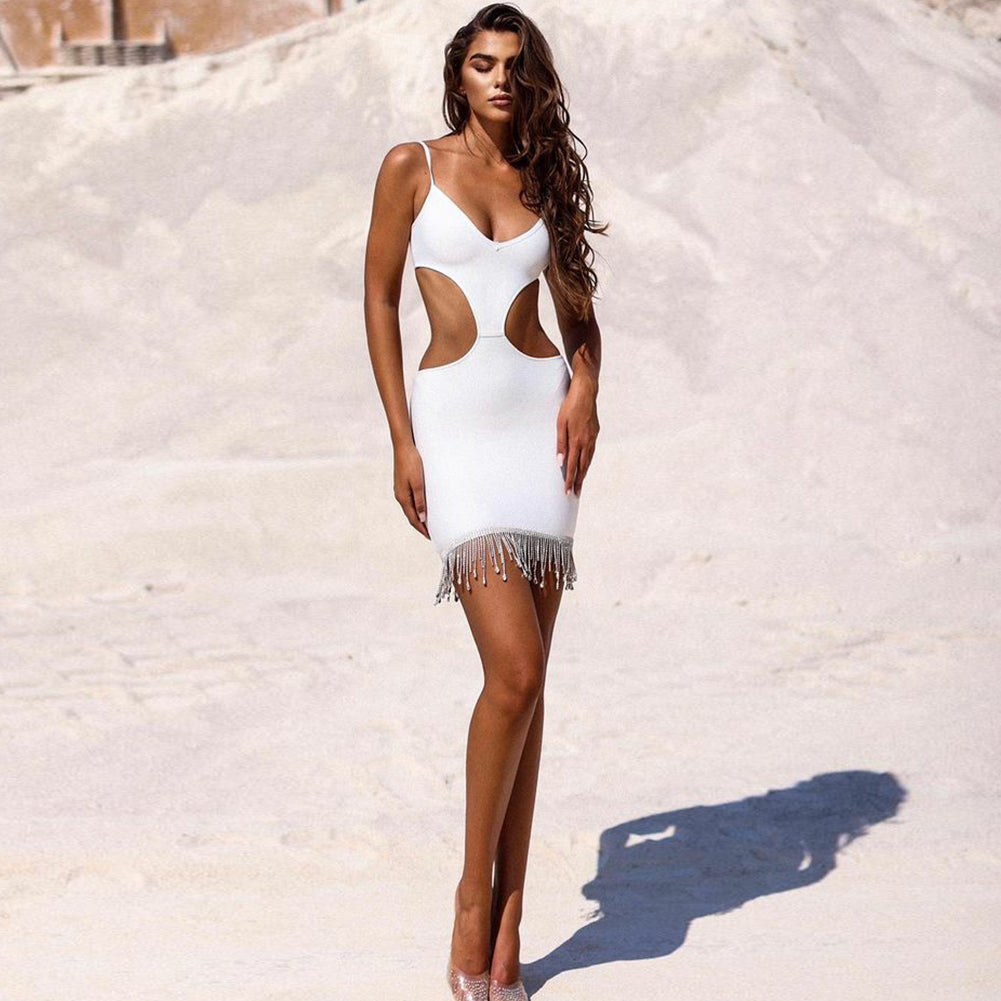 Ärmelloses Mini-Bandage-Kleid mit Riemchen und Drill-Kette SW6446