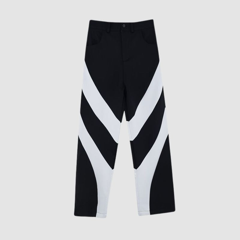 Merkmale: Hose. Weite Beine. Streifen-Patchwork-Design. Reißverschluss vorne. Farbkontrast. Gerades Bein . Lockere Passform . Unisex. Paar-Outfits.