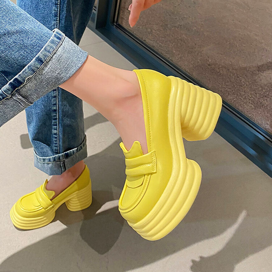 Veredeln Sie Ihr Schuhwerk mit bonbonfarbenen Plateau-Loafern, die Ihnen einen starken Auftritt verleihen 🌟