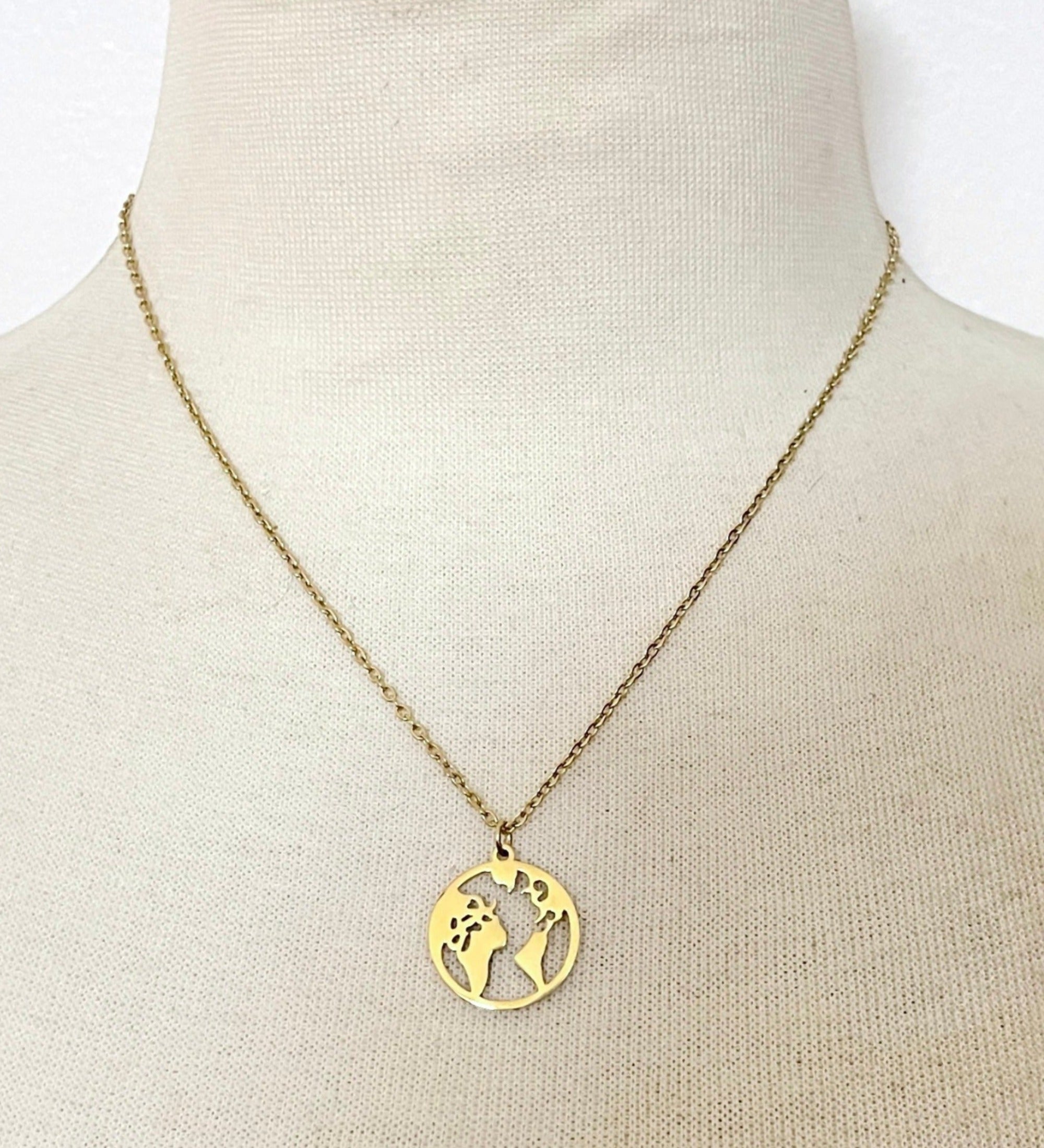 24 Karat vergoldete Edelstahlkette mit goldenem Welt-/Erde-/Globus-Anhänger