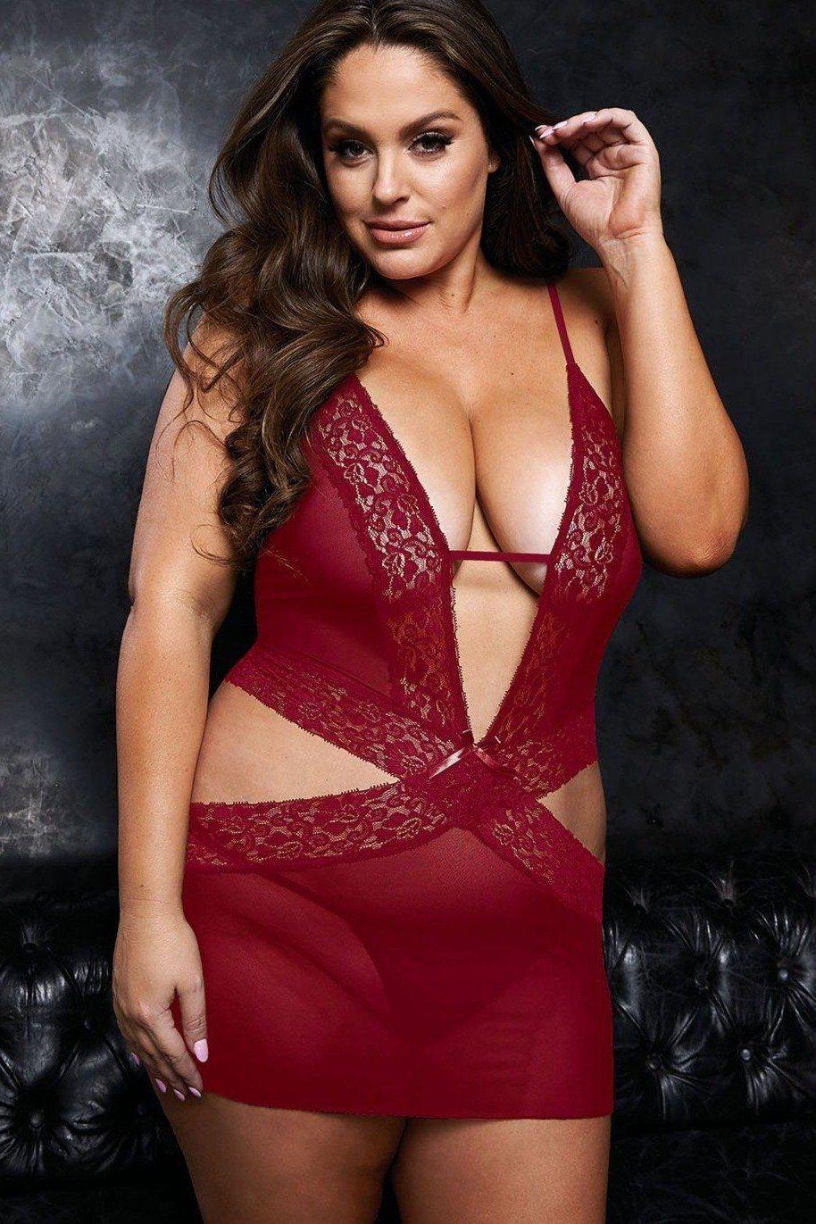 Minikleid mit tiefem V-Ausschnitt in Übergröße