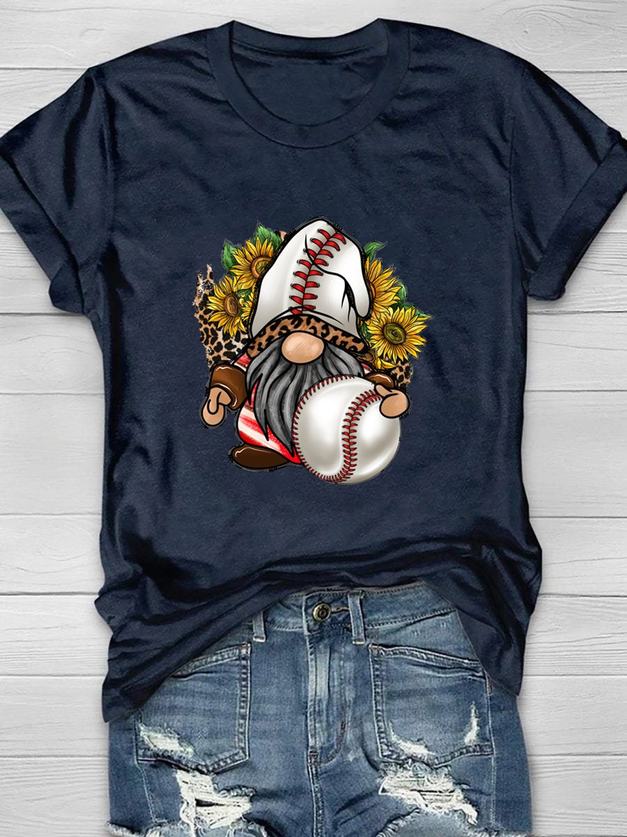 SKU: Western Baseball Gnome Print Short Sleeve T-Shirt