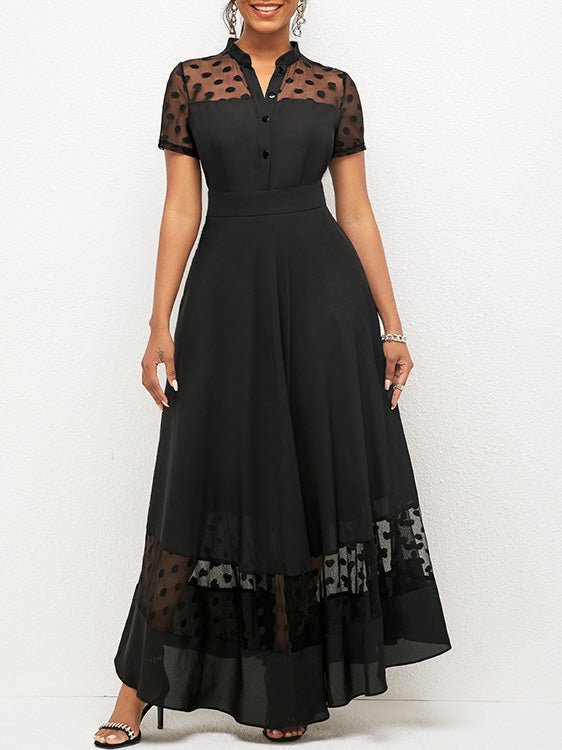 Kleid mit V-Ausschnitt und kurzen Ärmeln und gepunktetem Netzeinsatz