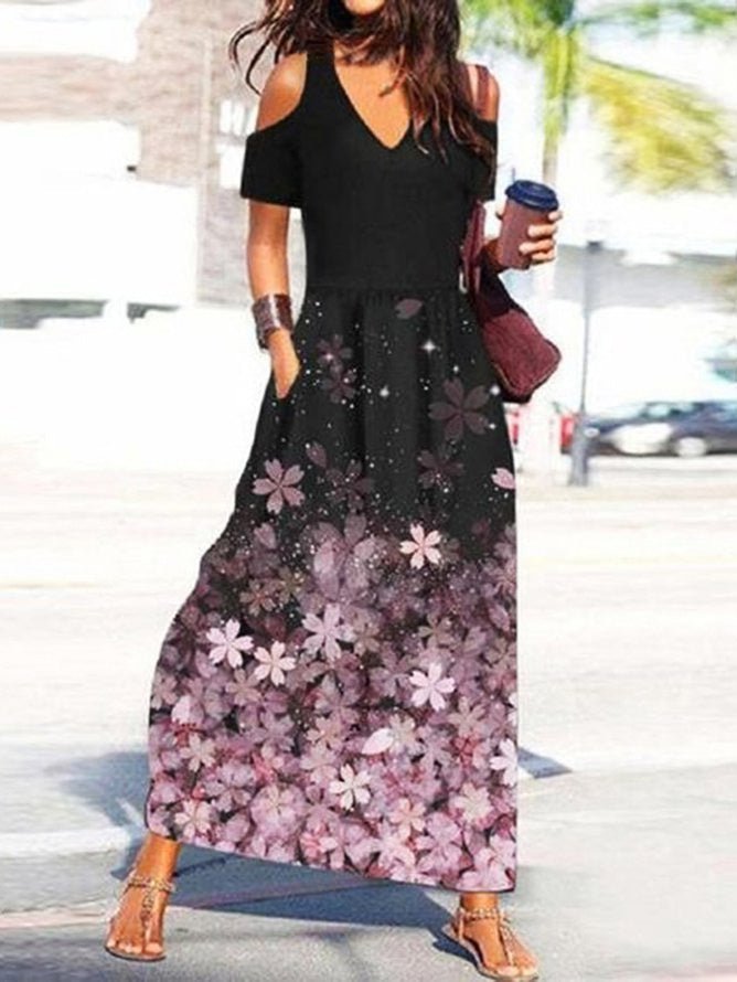 Bedrucktes, schulterfreies Kurzarmkleid