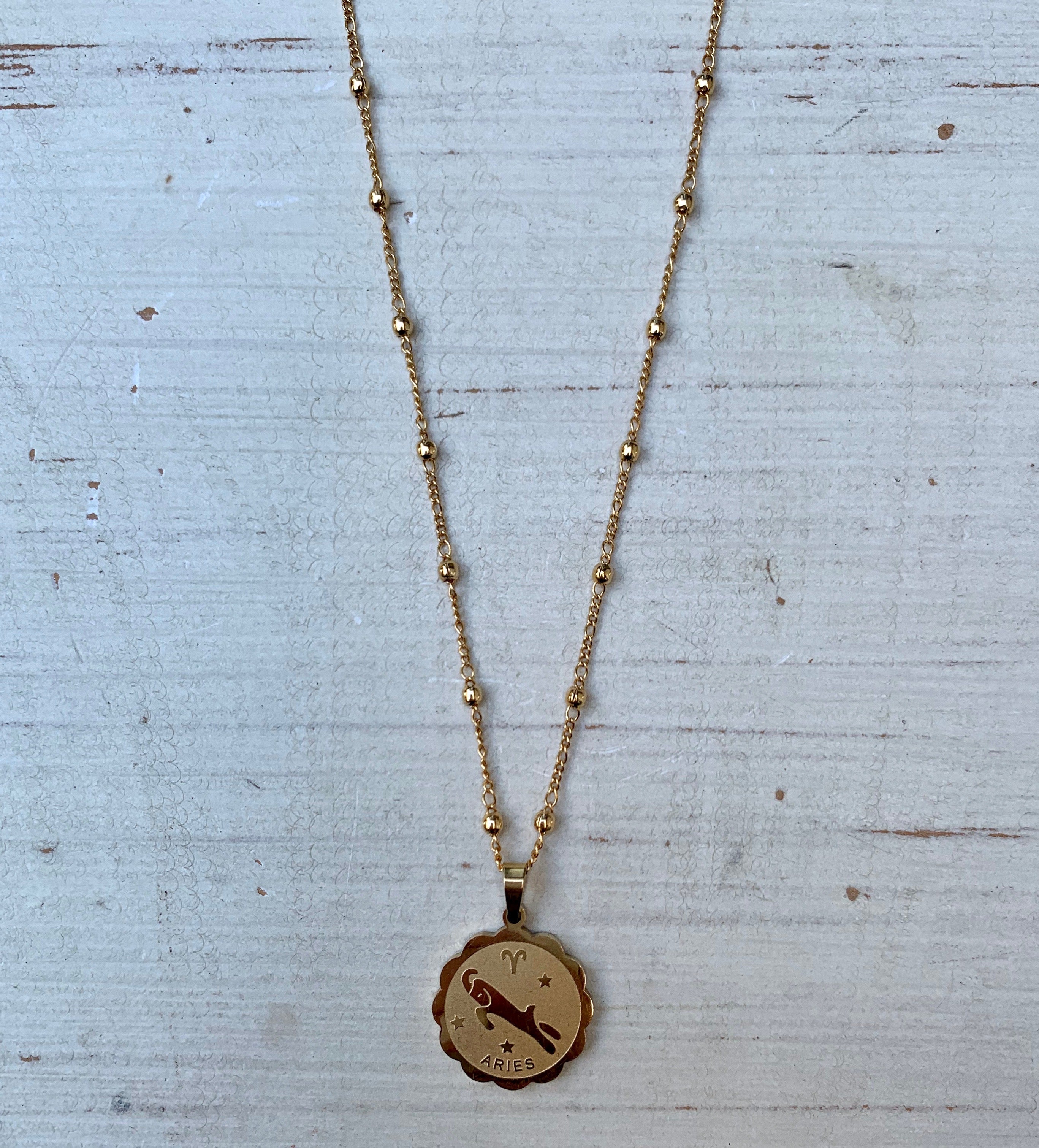 Halsketten mit goldgefüllten Sternzeichen-Scheibenanhängern an einer goldgefüllten Kugelkette