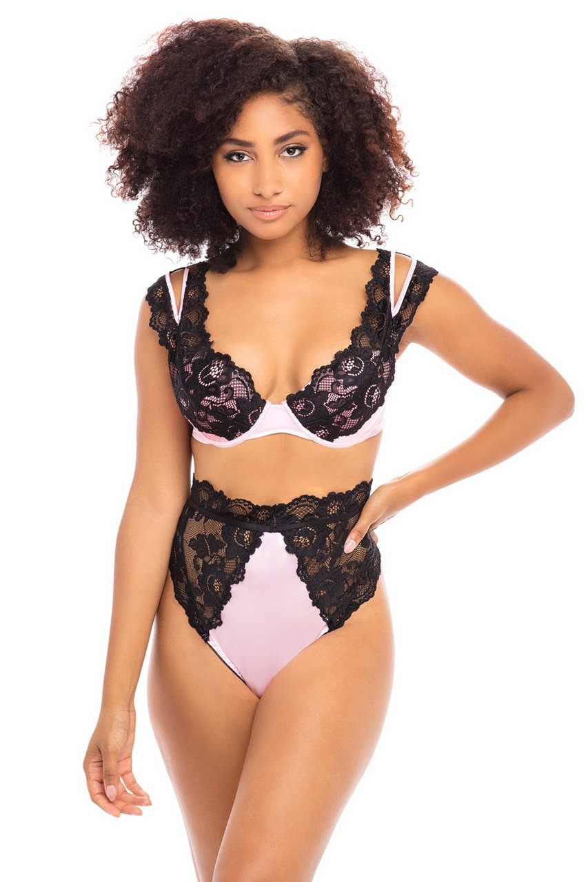 Conjunto de 2 piezas con copa acolchada, tirantes con detalles de abertura y braguita de cintura alta a juego