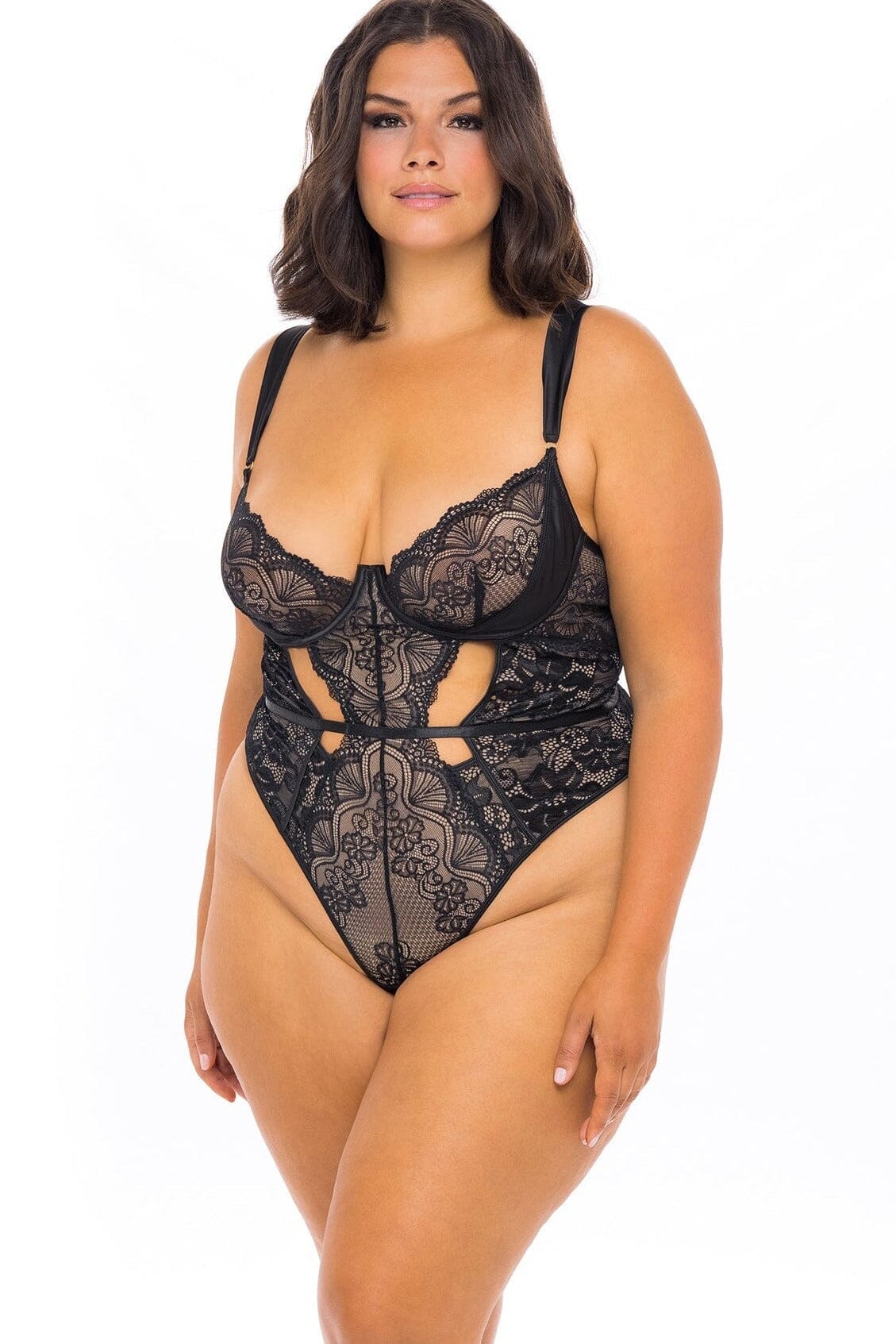 Teddy sin forro con encaje de pestañas festoneadas y acabado satinado
