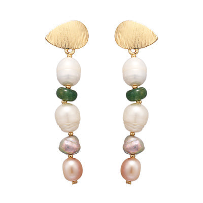 Diseño: Pendientes llamativos con bolas de hojas y perlas colgantes.
