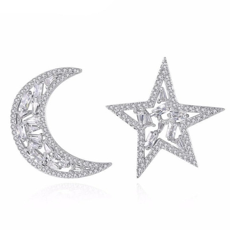 Diseño: Pendientes asimétricos de estrella y luna de cristal
