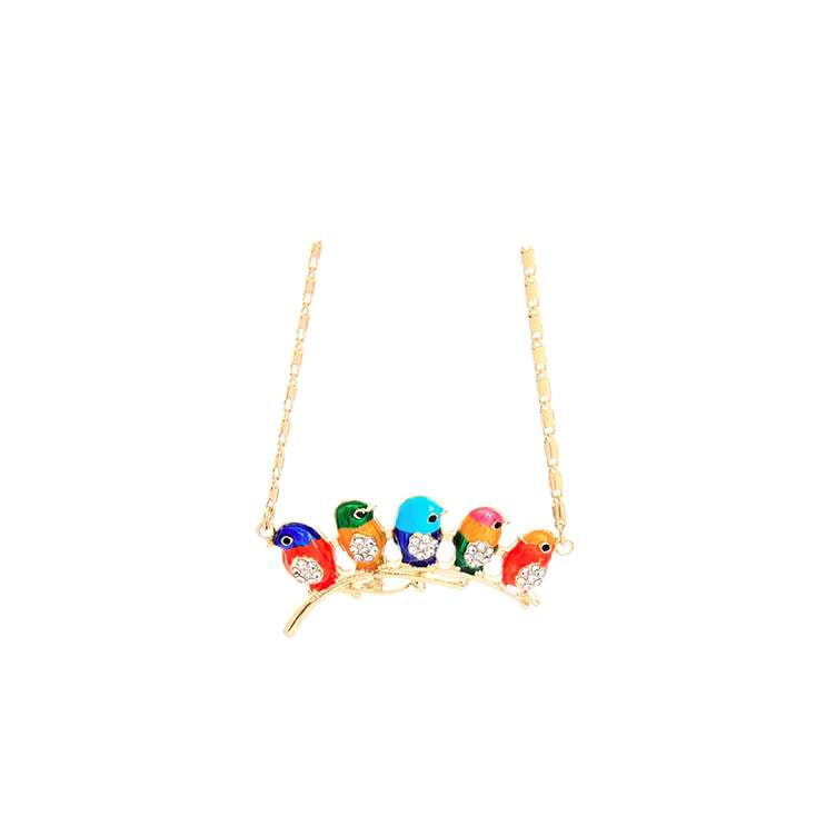 Diseño: Colgante de cadena con pájaros de colores en una rama de cristal y esmalte.