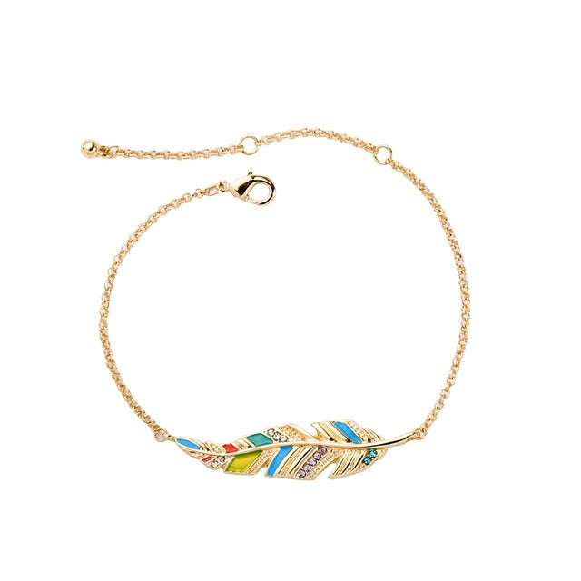 Diseño: Pulsera de cadena con plumas de cristal y esmalte