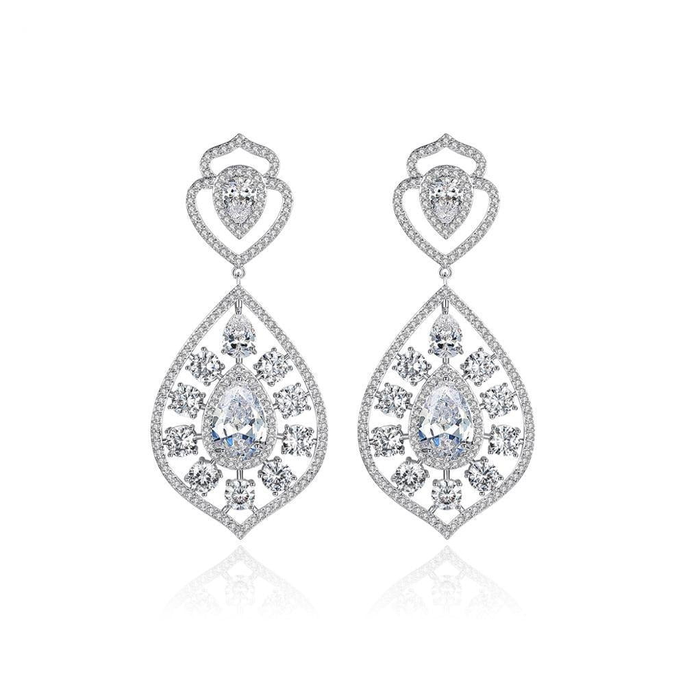 Diseño: Pendientes llamativos con forma de lágrima y flores brillantes de cristal