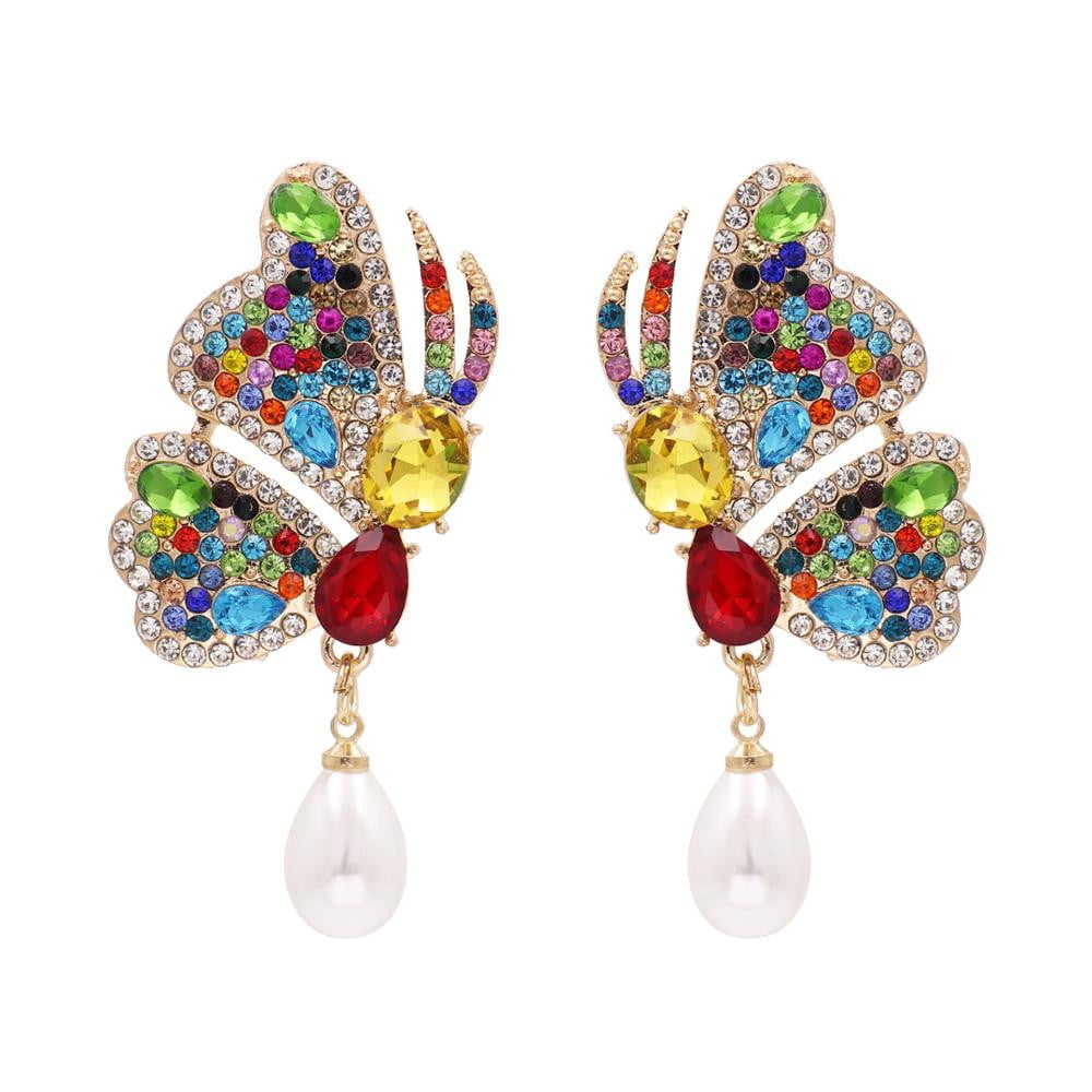 Diseño: Pendientes llamativos de mariposa de cristal con perla colgante en forma de lágrima