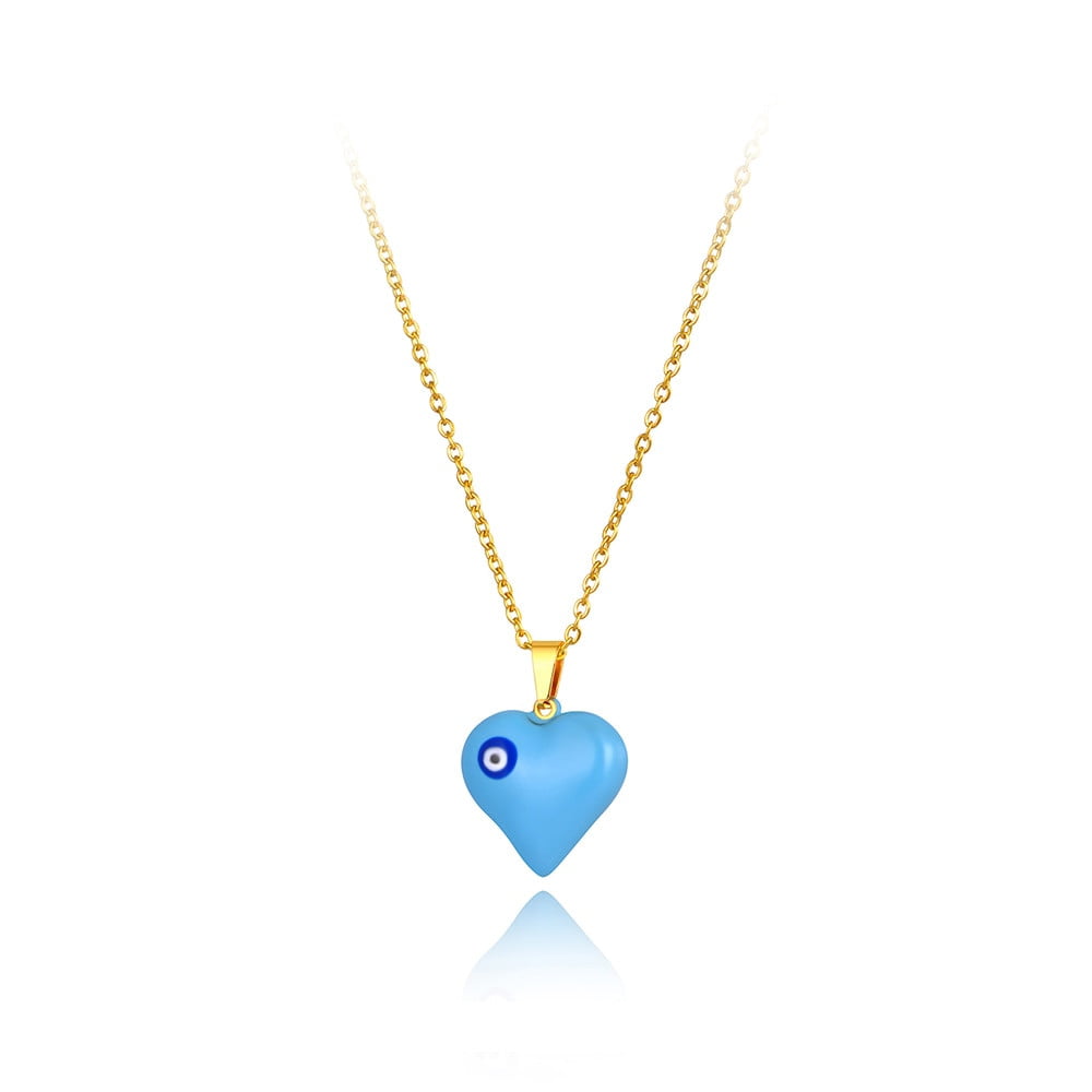 Diseño: Colgante de ojo de la suerte en forma de corazón hecho a mano en un collar de cadena de eslabones